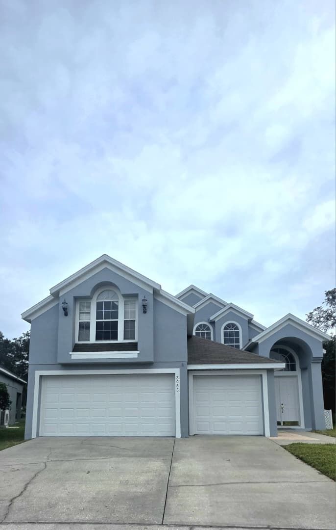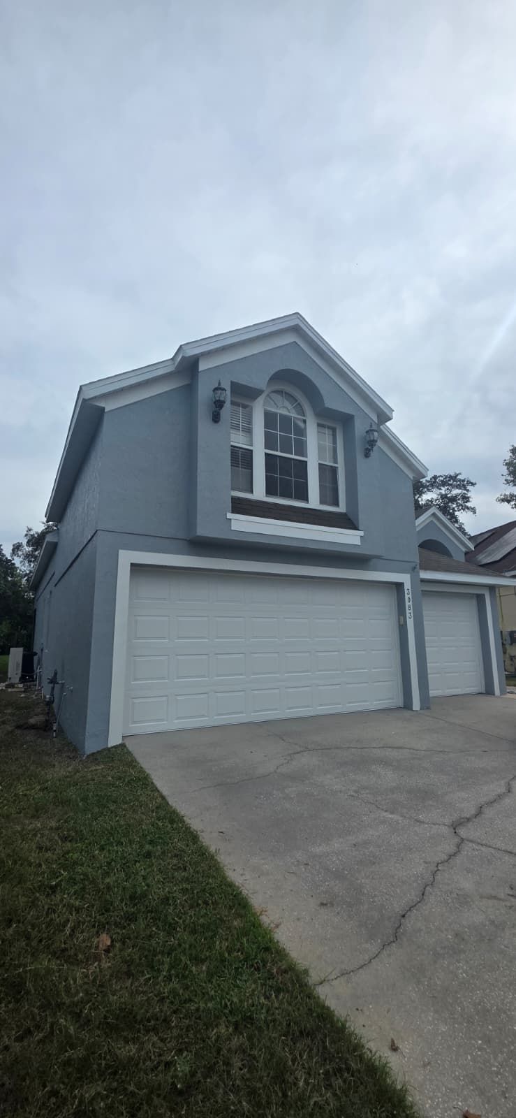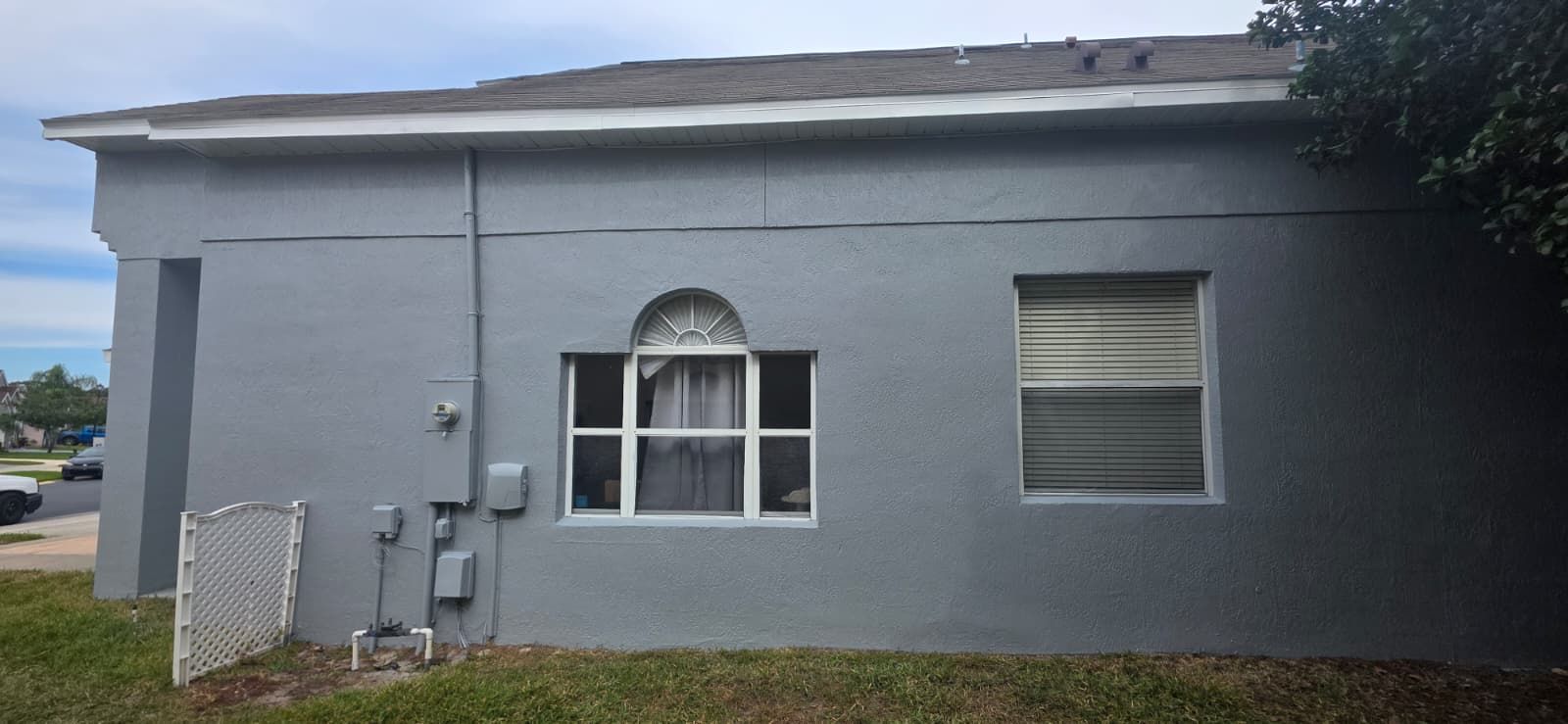 We completed a full exterior painting project in Egret’s Landing (Lake Mary, FL) in just 2.5 days, applying Sherwin-Williams SW 6255 Morning Fog on all exterior walls and SW 7005 Pure White on trims, fascia, soffits, and garage doors. The scope included pressure washing, surface preparation, crack repairs, primer application, and two coats of premium exterior paint, ensuring a durable and weather-resistant finish ideal for Florida’s climate. The result is a modern, clean, and uniform exterior transformation, fully compliant with HOA requirements and designed to enhance curb appeal, improve protection against humidity and UV exposure, and extend the long-term performance of the home. Services: Exterior painting in Florida, stucco crack repair, premium Sherwin-Williams finishes, exterior home renovation.