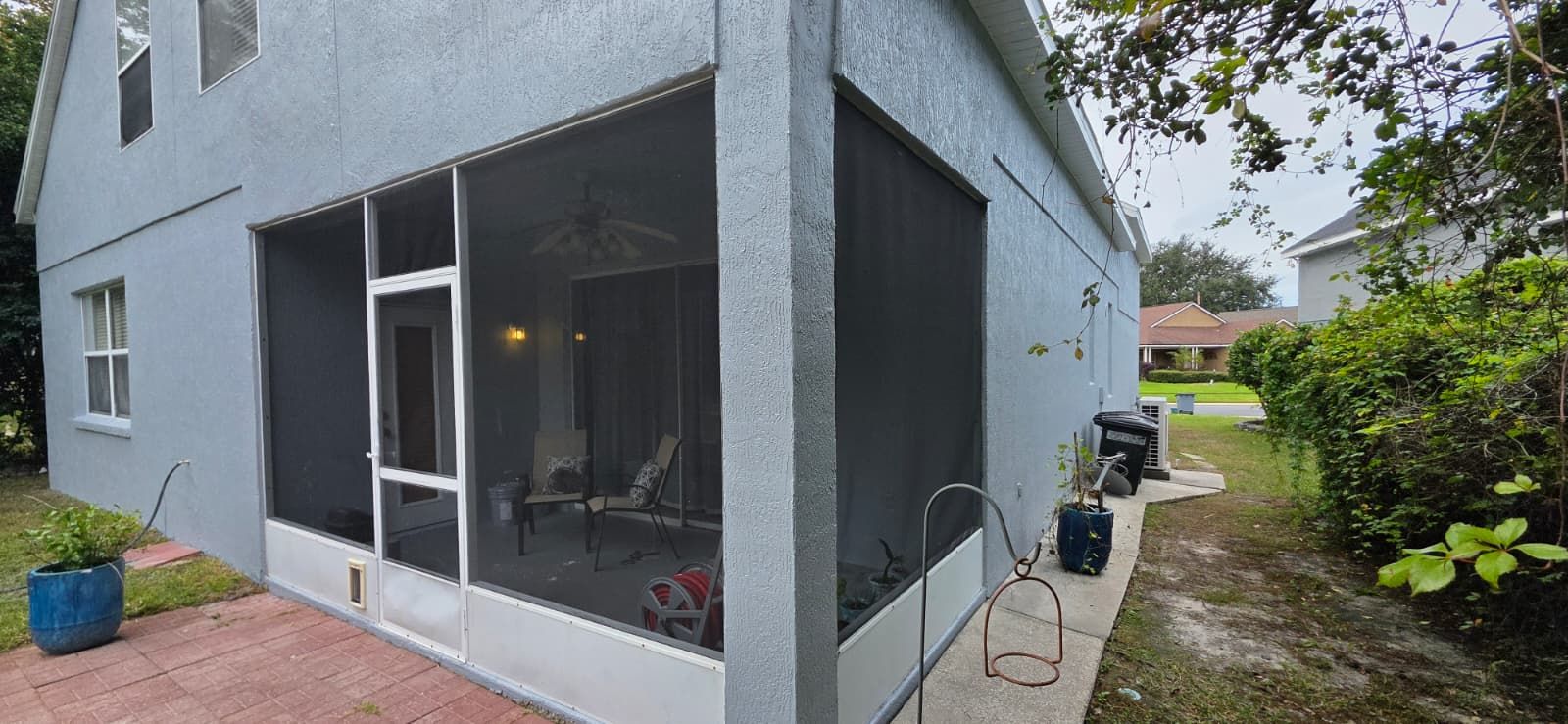 We installed a 3500 PSI fiber-reinforced concrete slab (10 ft × 24 ft, 4” thick) with a smooth brushed finish, providing higher durability, strength, and crack control. The project also included building a Mansard-style screen enclosure using steel panels and frames. The structure features a 24 ft × 9.5 ft front panel, 10 ft × 9.5 ft side panels, a 10 ft × 24 ft roof section, and two access doors. This upgrade expanded and protected the homeowner’s outdoor space, creating a functional, weather-resistant, and visually integrated area. ConstruNorth managed the entire process—including HOA and city permitting, certified materials, full installation, and a 1-year workmanship warranty. We deliver turnkey solutions for patios, concrete slabs, and screen enclosures throughout Central Florida.